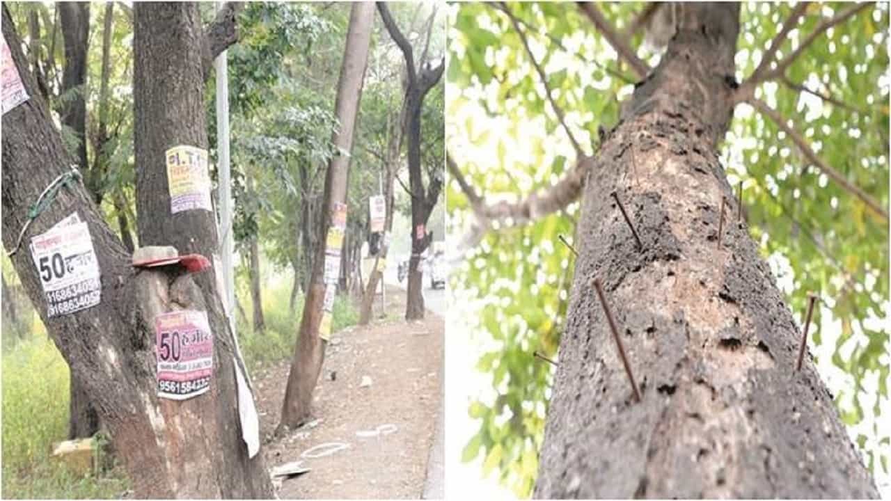 खरंतर जाहिरात करण्यासाठी अनेक जण पालिकेचा कर चुकवण्यासाठी विविध झाडांवर झोटे फलक लावतात. त्यासाठी झाडांना थेट खिळे ठोकले जातात. तर काही हॉटेल्स व्यावसायिक जाहिरात करण्यासाठी झाडांवर लायटिंग माळ टाकतात त्यासाठी खिळे ठोकतात.