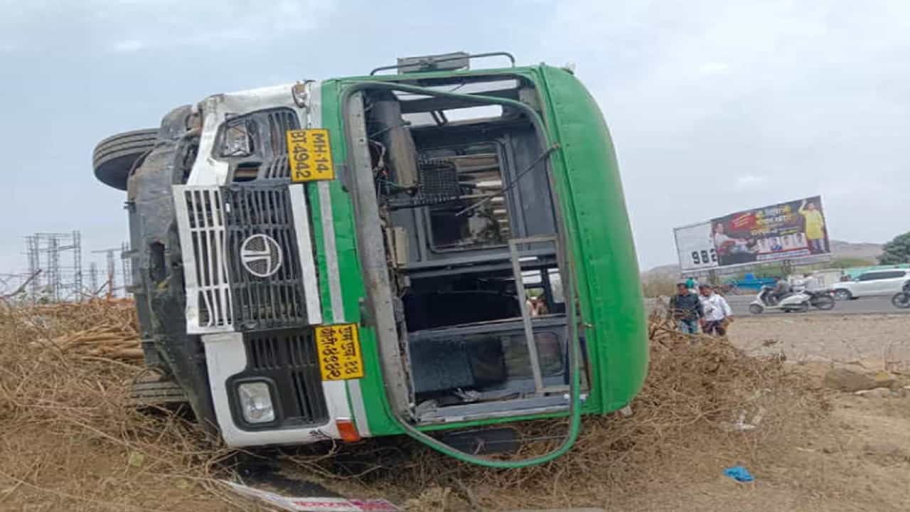 Pune | ज्यासाठी आटापिटा केला नेमकं तेच घडलं, दुचाकीस्वाराला वाचविण्याच्या प्रयत्नात एसटी बस पलटी