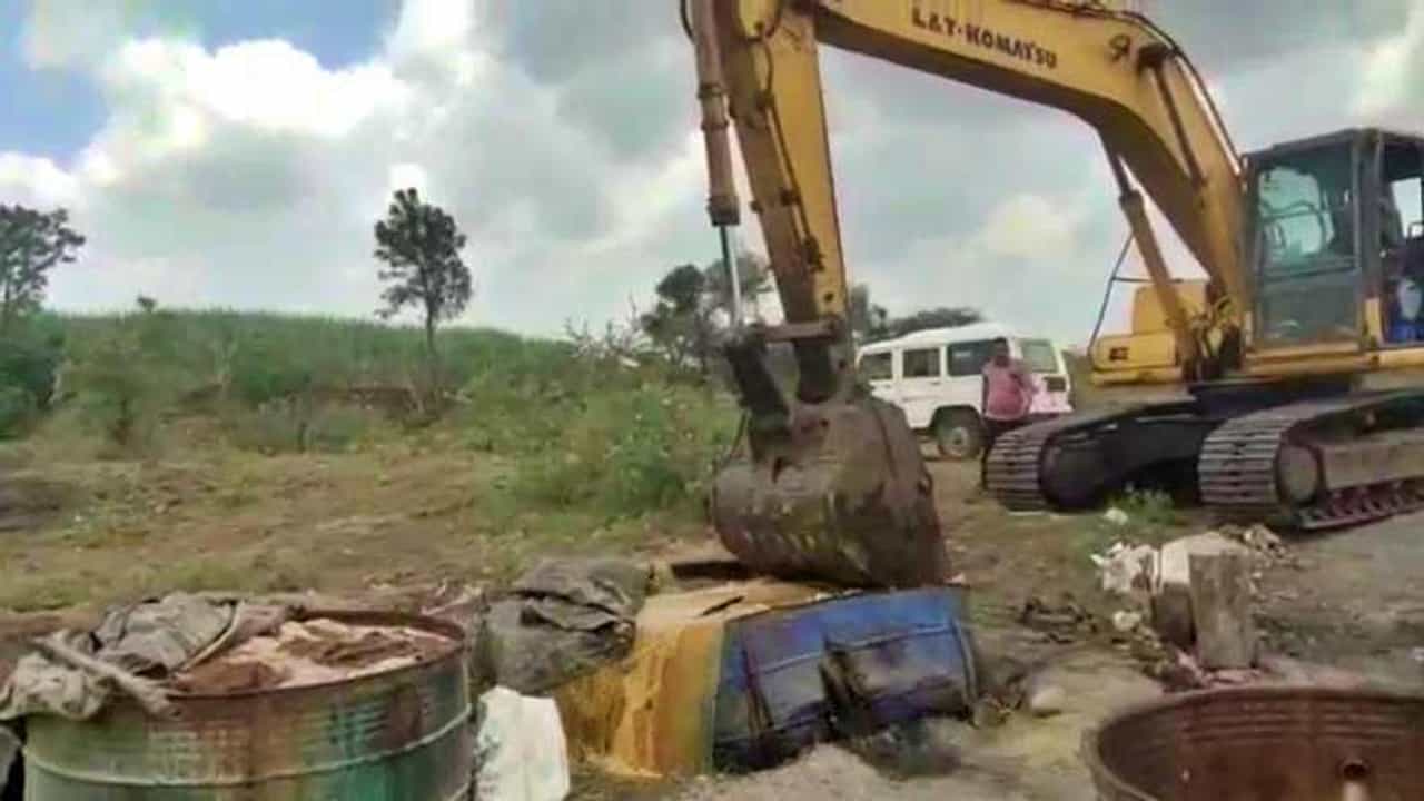 जेजुरी पोलिसांकडून शेतांमधील दारू भट्ट्या थेट पोकलेनद्वारे उद्ध्वस्त, 1 हजार लिटर रसायन नष्ट