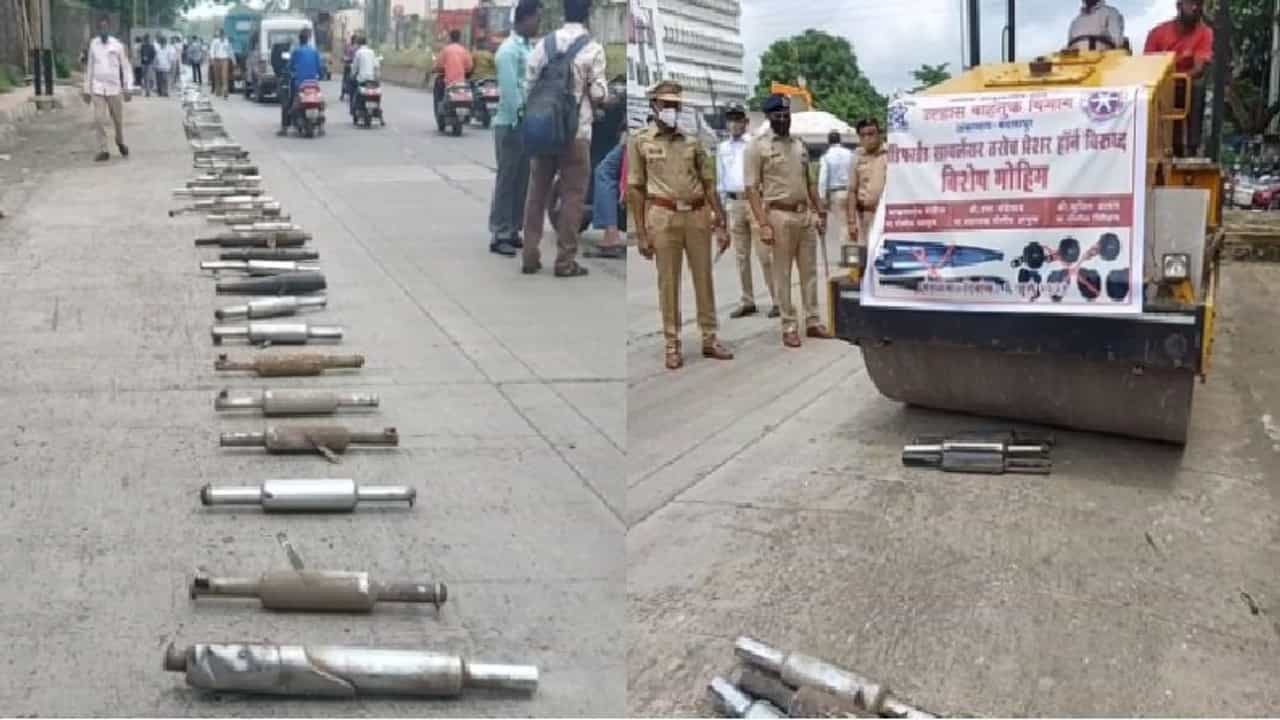 कानठळ्या बसवणाऱ्या मॉडिफाइड सायलेन्सरचा चुराडा, अंबरनाथमध्ये 150 सायलेन्सरवर रोडरोलर