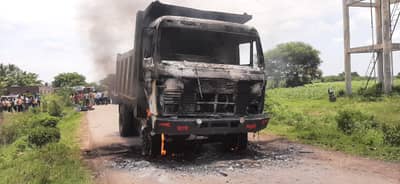 मुलीचा अपघातामध्ये मृत्यू झाल्याची माहिती गावात समजताचं घटनास्थळी लोकांची गर्दी वाढली. त्यावेळी अपघात झाल्यानंतर चालकाने पळ काढल्याचं कारण समजलं आहे. संतप्त झालेल्या जमावाने चालकाचा शोध घेतला. परंतु तिथं चालक कुठेही आढळून आला नाही. त्यानंतर डंपर पेटवून देण्यात आला. पोलिस घटनास्थळी दाखल झाले असून पंचनामा करीत आहेत. तसेच संबंधित डंपर चालक आणि मालकाविरोधात गुन्हा दाखल करावा अशी मागणी तिथल्या ग्रामस्थांनी केली आहे. सदर घडलेली घटना भयंकर असल्याने पोलिस तिथं तैनात करण्यात आले आहेत. त्याचबरोबर पुर्ण डंपरला आगीने वेडा घातला आहे.