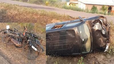 सिन्नर, नाशिक : शिर्डीला साई बाबांच्या दर्शनासाठी सायकलवर जाणाऱ्या साईभक्तांवर काळाने घाला घातला आहे. या घटणेने सिन्नरसह पंचक्रोशीत शोककळा पसरली असून हळहळ व्यक्त केली जात आहे. सिन्नर तालुक्यातील पाथरे गावाजवळ सकाळी सात वाजेच्या सुमारास हा अपघात घडला आहे. सिन्नर मधील काही तरुण हे सायकलवरुन शिर्डीच्या दिशेने दर्शनासाठी जात होते. अशातच भरधाव वेगाने महिंद्रा एसयूव्ही या वाहनाने या पाच सायकल स्वारांना चिरडले आहे. असून त्यात दोघांचा जागेवर मृत्यू झाला आहे. एकाची प्रकृती चिंताजनक असून त्याच्यावर खाजगी रुग्णालयात उपचार सुरू आहे. अपघातानंतर जवळच असलेल्या नाल्यात ही कार उलटली होती. भरधाव वेगाने आलेल्या वाहनाने पाच साईभक्तांना चिरडल्याने दोघांचा मृत्यू झाला आहे. एकाची प्रकृती चिंताजनक आहे. तर दोघे गंभीर जखमी आहे. सिन्नर ते शिर्डी रस्त्यावर नेहमीच अपघात होत असल्याने या अपघातानंतर सिन्नर-शिर्डी हा रस्ता पुन्हा एकदा चर्चेत आला आहे.