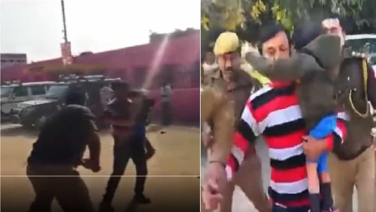 VIDEO | कडेवर लेकरु घेतलेल्या बापाला काठीने मारहाण, असंवेदनशील पोलिसाचं निलंबन