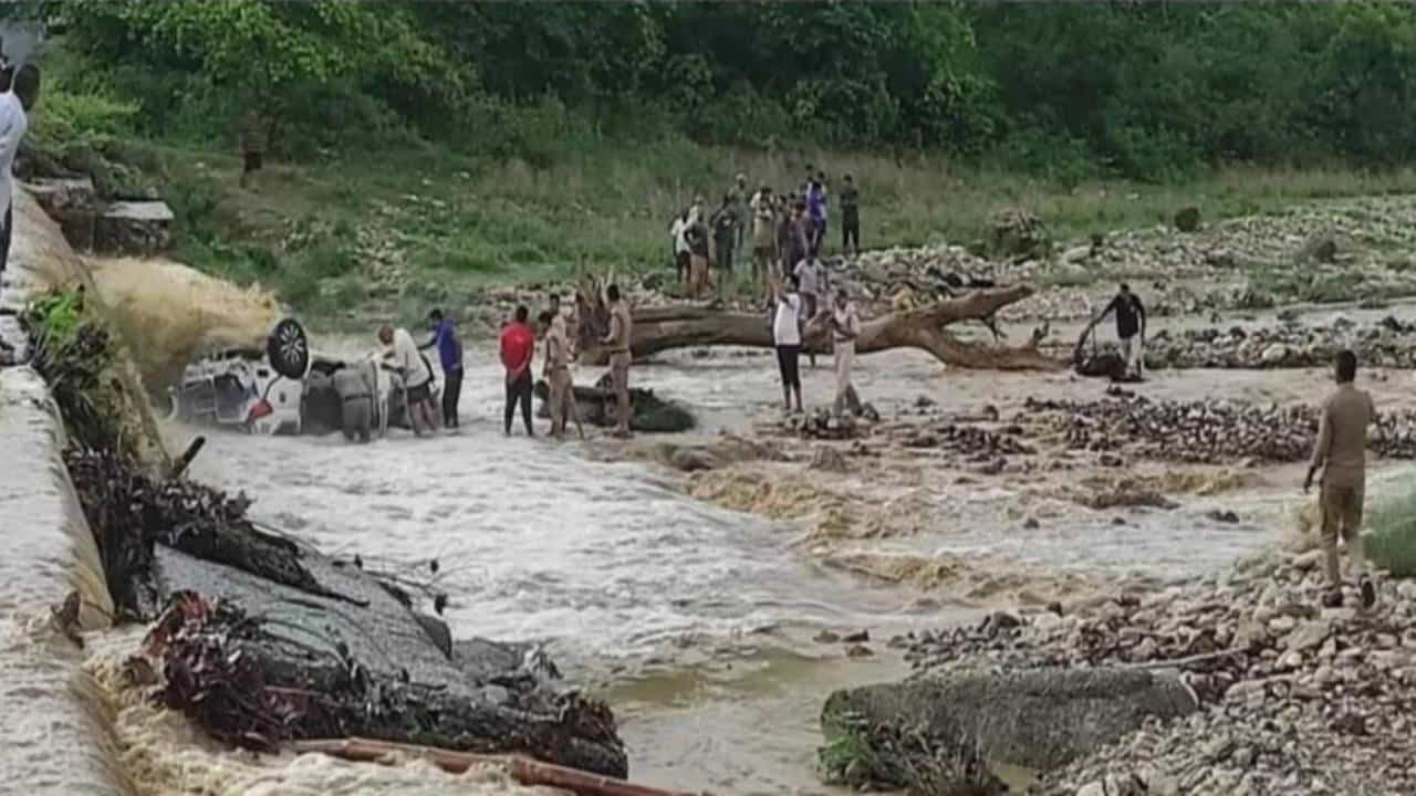 #WATCH Uttarakhand | 9 died, 1 girl rescued alive and about 5 trapped after a car washed away in Dhela river of Ramanagar amid heavy flow of water induced by rains early this morning, confirms Anand Bharan, DIG, Kumaon Range pic.twitter.com/Dxd27Di5mv