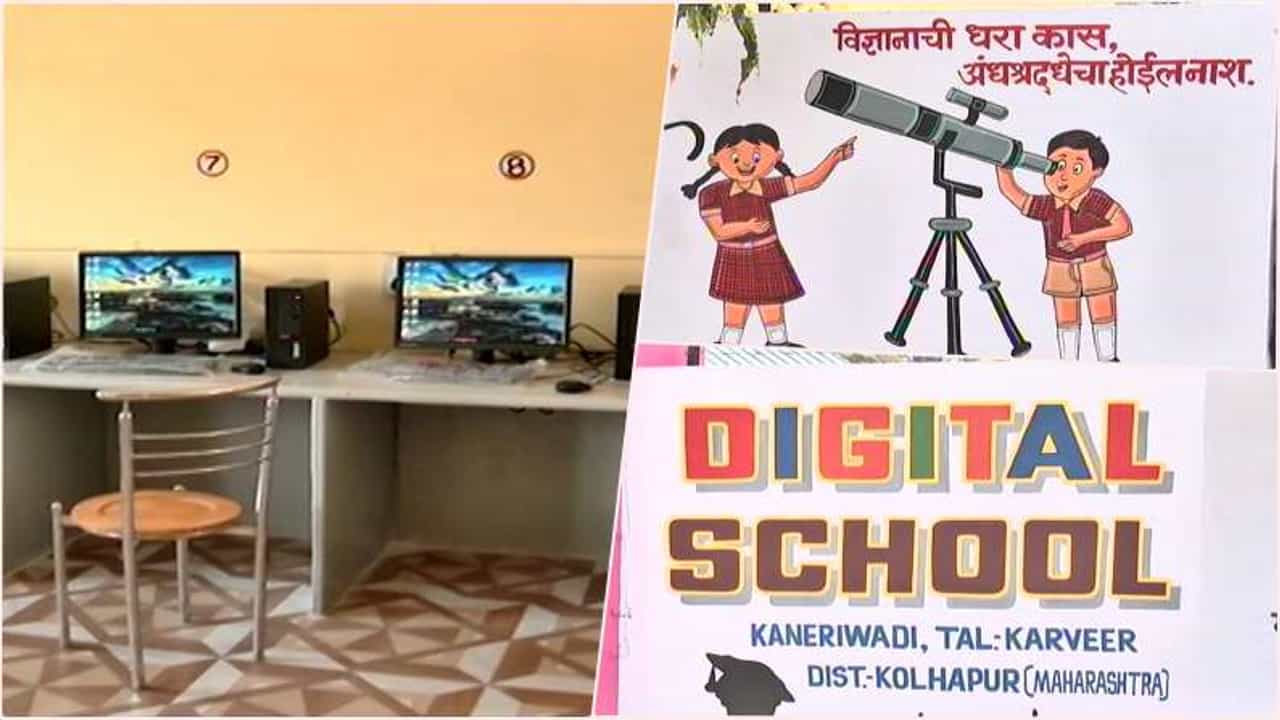 कोल्हापूर: संपूर्ण गावाने एखादी गोष्ट ठरवली तरी कोणत्याही अडचणींवर मात करत असाध्य गोष्ट साध्य करता येते. कोल्हापूर जिल्ह्यातील हे करवीर तालुक्यातील कणेरीवाडी येथील या ग्रामस्थांनी सिद्ध करून दाखवलं आहे. कणेरीवाडी ग्रामस्थांच्या पुढाकाराने गावातील प्राथमिक शाळेचं नुसतं रुपच बदल नाही तर ही शाळा डिजीटल झालीय. पहिली ते सातवी पर्यंत 24 वर्ग डिजीटल असणारी ही राज्यातील पहिली जिल्हा परिषदेची शाळा ठरलीय. कणेरीवाडीची शाळा राज्यातील सर्वाधिक पटसंख्या असणारी शाळा आहे. (Kaneriwadi Villagers converted ZP School into Digital School)