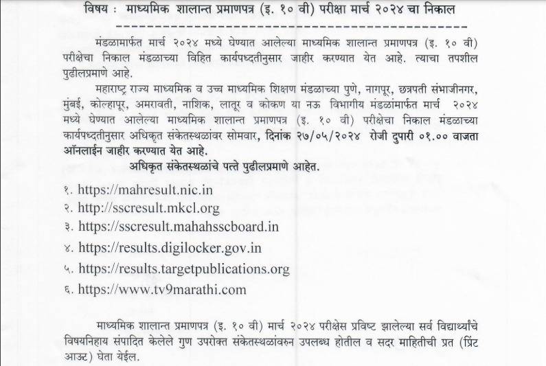 दहावीच्या निकालासाठी टीव्ही9 मराठी ऑफिशियल वेबसाईट; बोर्डाच्या परिपत्रकात काय म्हटलंय?