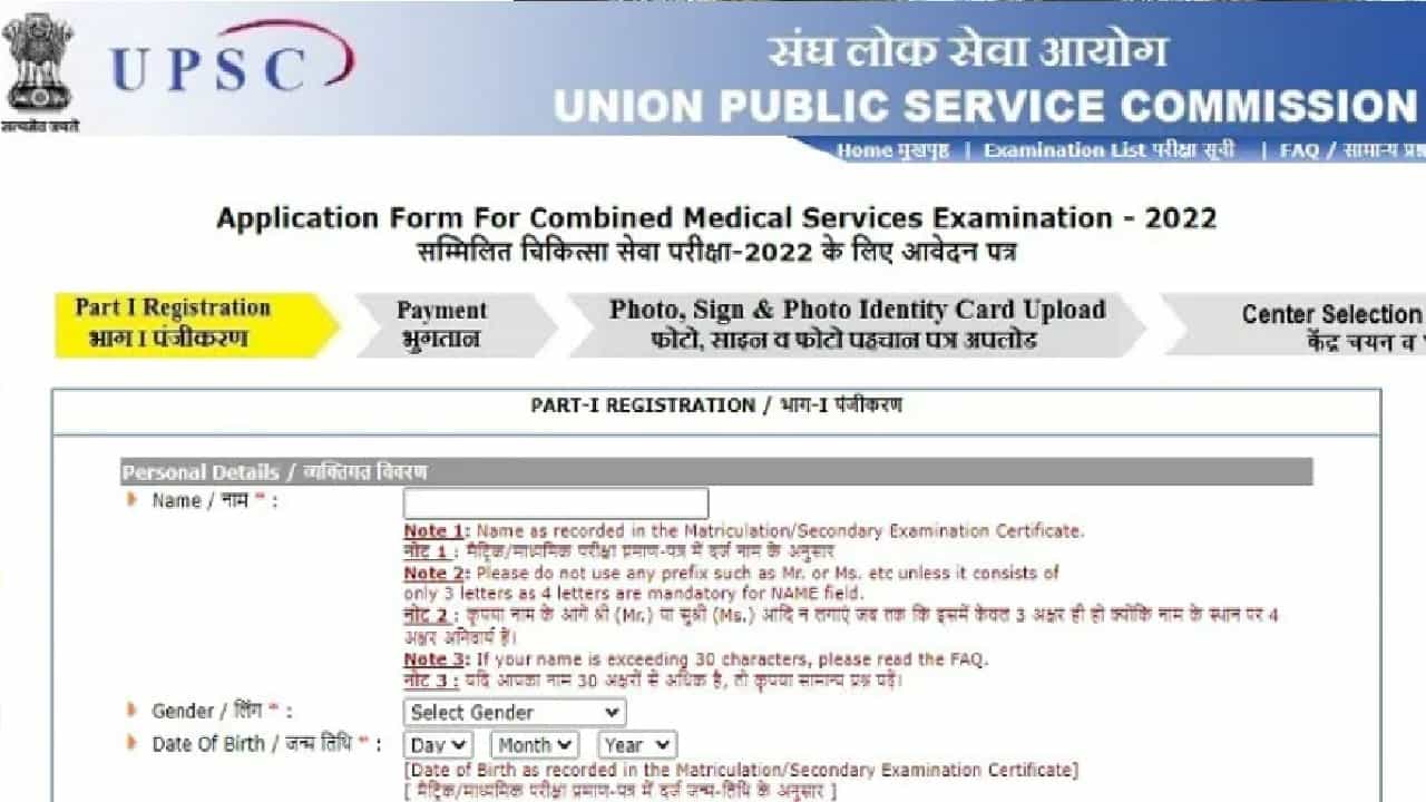 युपीएससी संयुक्त वैद्यकीय सेवा परीक्षा 2022 साठी अर्ज करण्यासाठी सर्वात पहिली युपीएससीच्या www.upsc.gov.in या वेबसाईटवर जावे. त्या वेबसाईटवर देण्यात आलेल्या Apply online या पर्यायावर क्लिक करा. त्यानंतर Combined Medical Services Examination या लिंकवर जावे. त्यानंतर रजिंस्ट्रेशन करावे. त्यानंतर परीक्षेसाठी अर्ज भरु शकतात. पूर्ण अर्ज भरल्यावर त्याची प्रिंट काढून घ्यावी.