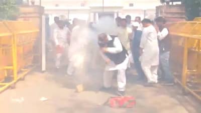 काँग्रेस मुख्यालयासमोर कार्यकर्ते विजयाचे सेलिब्रेशन करत फटाके फोडत होते. तेव्हा एक दुर्घटना घडली. मात्र काँग्रेस नेते थोडक्यात बचावले हा एक चांगला योगायोग होता, अन्यथा मोठी दुर्घटना घडली असती. खरंतर काँग्रेस नेत्याने हातात पेटता फटाका हातात घेतला होता. मात्र त्यांचा तोल गेला आणि फटाक्यांनी भरलेला संपूर्ण बॉक्स जमिनीवर पडला. जमिनीवर पडूनही फटाके फुटणे सुरूच होते. त्यातील एक फटाका काँग्रेसच्या नेत्याच्या चेहऱ्याजवळ फुटला. सुदैवाने फटाका त्यांच्या जवळून वर गेला अन्यथा त्यांचा संपूर्ण चेहरा जळला असता.