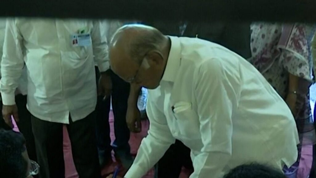 Lok Sabha Election : शरद पवार मतदान केंद्रावर दाखल