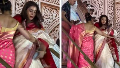 सध्या काजोल हिचा एक व्हिडीओ सोशल मीडियावर तूफान व्हायरल होताना दिसतोय. हा व्हिडीओ मंडपातीलच आहे. पायऱ्या उतरत असताना काजोल हिचा पाय घसरतो आणि थेट ती पडत असताना तिची बहीण तिला सांभाळते. यावेळी काजोल हिच्या हातामध्ये फोन होता आणि तो फोन सरळ खाली पडताना दिसतोय.