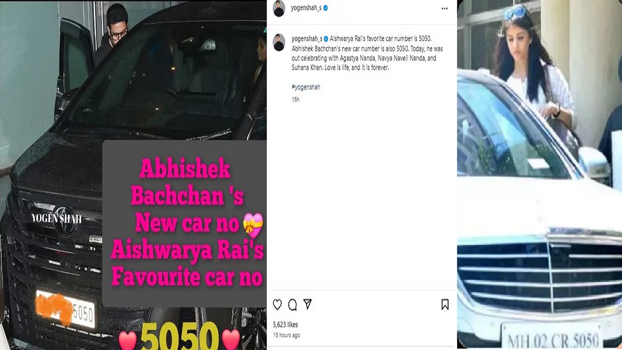 अभिषेक बच्चन यांच्या नव्या कारचा नंबर 5050 आहे. जो ऐश्वर्याचा आवडता रंग आहे. सागंयाचं झालं तर, ऐश्वर्याची पांढऱ्या रंगाची ‘मर्सिडीज-बेंझ एस-क्लास’ जी आता विकली गेली आहे. त्या कारचा नंबर देखील 5050 होता. याशिवाय अभिषेकचा वाढदिवसही 5 फेब्रुवारीला असतो.