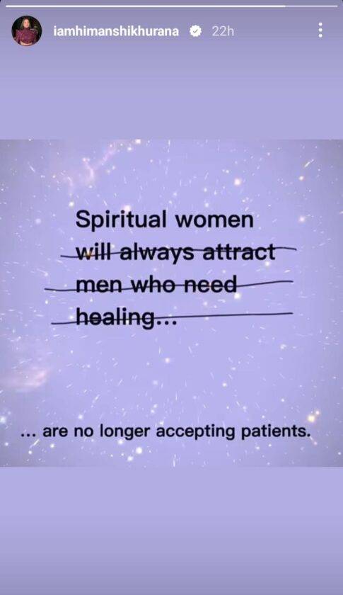 आता हिमांशी खुराना हिने सोशल मीडियावर एक पोस्ट शेअर केलीये. ही पोस्ट पाहून असे स्पष्ट होत आहे की, हिमांशी खुराना हिच्या निशाण्यावर आसिम रियाज हा आहे. हिमांशी खुराना हिच्या पोस्टमध्ये म्हणण्यात आले की, सशक्त महिला नेहमीच अशा पुरुषांना आकर्षित करतात ज्यांना उपचारांची आवश्यकता असते… मात्र, हिमांशीने दुसरी लाईन कट केली आणि त्याऐवजी लिहिले की, सशक्त महिला आता रुग्ण स्वीकारत नाहीत…