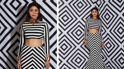 ब्लॅक अँड व्हाइट स्ट्राइप्स आउटफिट घालून इव्हेंटमध्ये पोहोचली होती शिल्पा