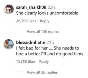 मात्र याचदरम्यान मागे उभे असलेले काही लोकही हसत होते. पण हा व्हिडीओ पाहून नेटकरी बरेच भडकले आहेत. अनेक युजर्सनी उर्वशी आणि सुपरस्टारला खडेबोल सुनावत त्यांची चांगलीच शाळा घेतली आहे. या व्हिडीओवर असंख्य लोकांच्या कमेंट्स आल्या आहेत. करिअरसाठी काय काय करावं लागतंय, असं एका युजरने लिहीलं. तर, एवढा मोठा स्टार आहे पण तरीही तरूण मुलीच्या मागे लागलाय असं लिहीत एकाने नंदामुरी बालकृष्ण याच्यावर टीका केली. उर्वशी डावन्स करताना किती अनकम्फर्टेबल आहे, याचाही अनेकांनी कमेट्समध्ये उल्लेख केला आहे. काहींनी त्या नटाला अंकल म्हटलं तर काहींना त्याचा थेट आजोबा असा उल्लेख करत हेटाळणी केली.