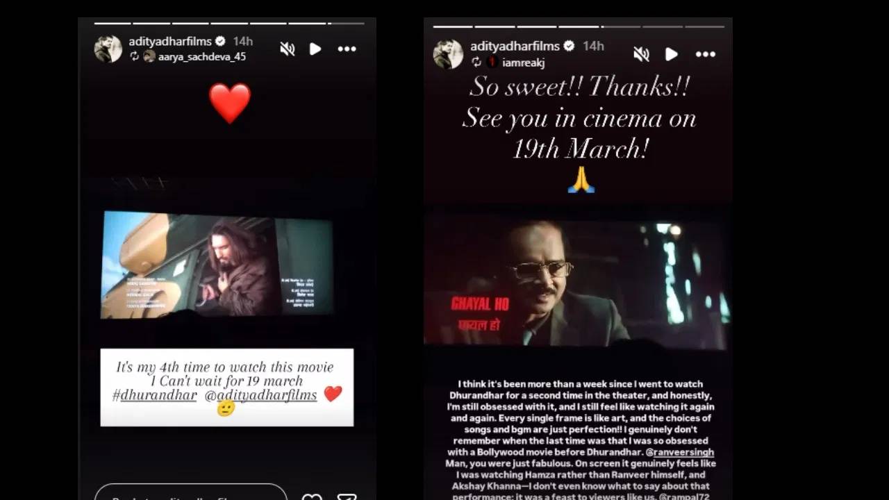 आदित्य धरने त्याच्या इन्स्टाग्राम स्टोरीवर काही चाहत्यांच्या पोस्ट शेअर केल्या आहेत. या पोस्टमध्ये चाहते दुसऱ्या भागासाठी खूपच उत्सुक असल्याचं दिसून येत आहे. रिपोस्ट करताना आदित्यने ‘धुरंधर 2’च्या प्रदर्शनाची तारीखही सांगितली आहे. एका चाहत्याला उत्तर देताना त्याने लिहिलं, ‘खूप गोड, धन्यवाद! येत्या 19 मार्च रोजी थिएटरमध्ये भेटू.’ या पोस्टवरून हे स्पष्टपणे दिसून येतंय की ‘धुरंधर 2’ हा चित्रपट नियोजित तारखेलाच थिएटरमध्ये प्रदर्शित होणार आहे. त्यामुळे प्रदर्शनाची तारीख पुढे ढकलल्याच्या केवळ अफवा असून त्यात काही तथ्य नाही.