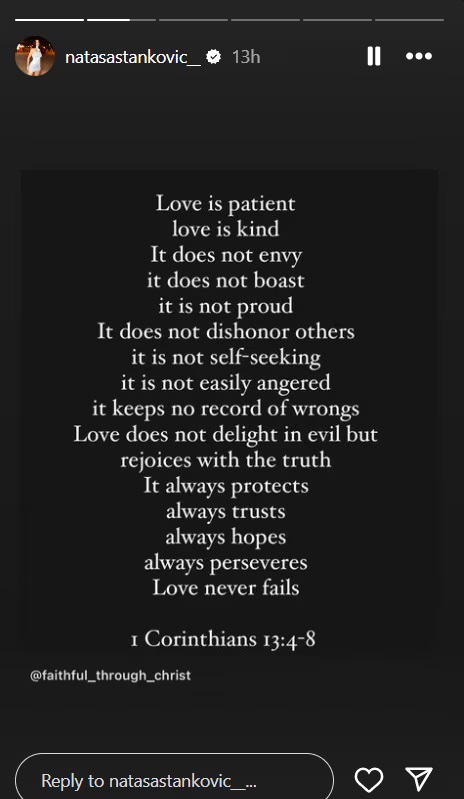 घटस्फोटानंतर नताशा सतत सोशल मीडियाच्या माध्यमातून भावना व्यक्त करत असते. आता एक क्रिप्टिक पोस्ट करत अभिनेत्री म्हणाली, ‘प्रेम दयाळू आणि धैर्यवान आहे. प्रेम कधीचं अहंकार करत नाही. प्रेम कधी मागितलं जाऊ शकत नाही. किंवा प्रेमाचे कोणते रेकॉर्ड आपण ठेऊ शकत नाही… काय बरोबर आहे काय चुकीचं आहे… कोणी सांगू शकत नाही…’