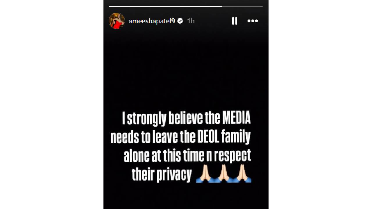 अभिनेत्री अमीषा पटेलनेही हीच भावना व्यक्त केली. ‘माझं ठाम मत आहे की मीडियाने यावेळी देओल कुटुंबाला एकटं सोडलं पाहिजे आणि त्यांच्या खासगीपणाचा आदर केला पाहिजे’, असं तिने हात जोडलेल्या इमोजीसह लिहिलं होतं.