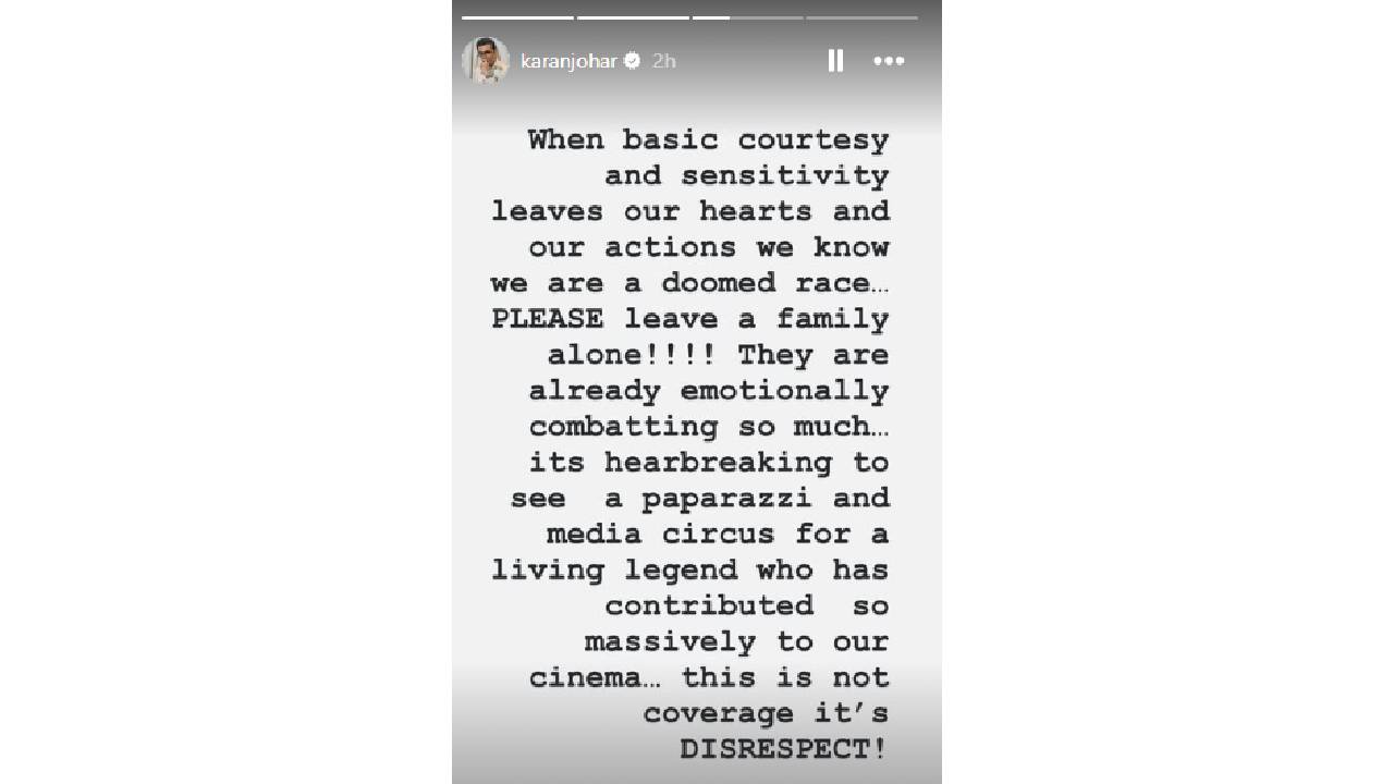 धर्मेंद्र यांच्या प्रकृतीविषयी सातत्याने चिंता व्यक्त केली जात असताना पापाराझींकडून सतत देओल कुटुंबीयांच्या खासगीपणाचं उल्लंघन केलं जात आहे. त्यांच्या या वर्तनावर आता निर्माता-दिग्दर्शक करण जोहरनेही संताप व्यक्त केला आहे.