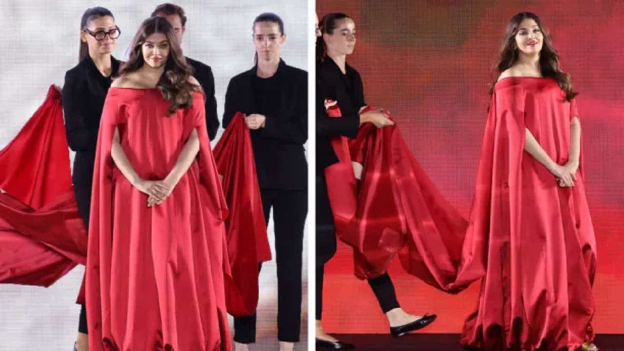 ऐश्वर्याने रॅम्प वॉकदरम्यान जो लाल रंगाचा बलून ड्रेस परिधान केला होता, त्याला सात मीटर लांब ट्रेल (ड्रेसला जोडून असलेला कापड) जोडलेला होता. या ट्रेलवर ब्रँडची टॅगलाइनसुद्धा लिहिलेली होती. ऐश्वर्या जेव्हा स्टेजवर आली, तेव्हा तिचा ड्रेस सांभाळण्यासाठी चार-पाच चण स्टेजवर आले होते. त्यानंतर जेव्हा ऐश्वर्याने रॅम्प वॉक सुरू केला तेव्हा ड्रेसचा ट्रेल स्टेजवर तिथेच पडला. तरीही ऐश्वर्याने ही गोष्ट जाणवू दिली नाही. तिच्या चेहऱ्यावरील हावभावात कुठलाही बदल झाला नाही. तिने तितक्याच आत्मविश्वासाने रॅम्प वॉक केला. यावेळी नेहमीप्रमाणे ऐश्वर्याने चाहत्यांना फ्लाइंग किस दिला आणि स्टेजच्या समोर आल्यानंतर ‘नमस्ते’ करून सर्वांची मनं जिंकली. वॉक संपत असताना ऐश्वर्याने तो ट्रेल उचलून पुन्हा गाऊनला जोडला, तेव्हा लोकांना त्या गोष्टीची जाणीव झाली.