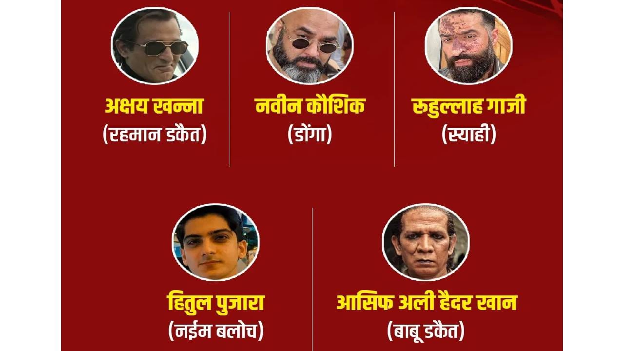 3. हितुल पुजारा (नईम बलोच): या चित्रपटात हिुल रहमान डकैतच्या मोठा मुलाच्या भूमिकेत आहे. परंतु फ्रेममध्ये त्याची एन्ट्री होताच एक्झिटसुद्धा होते. ज्याचे प्राण वाचवून रणवीर सिंह म्हणजेच हमजा रहमानच्या गँगमध्ये शिरण्याचा प्रयत्न करतो. परंतु नईमचा लग्नात मृत्यू होतो आणि त्यानंतर चित्रपटात रहमान डकैत म्हणजेच अक्षय खन्नाची एन्ट्री होते.