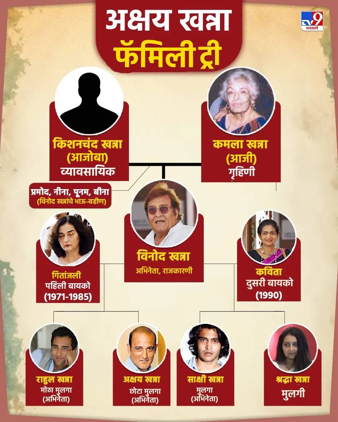 Akshaye Khanna Family Tree : 'धुरंधर'मुळे सध्या सर्वत्र चर्चेत असलेल्या अक्षय खन्नाच्या कुटुंबाविषयी तुम्हाला माहीत आहे का? अक्षयचे वडील आणि दिवंगत अभिनेते विनोद खन्ना यांनी दोन लग्न केले होते.