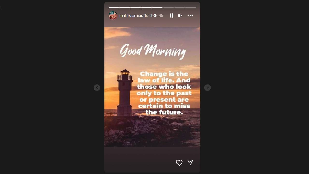 मलायकाने तिच्या इन्स्टा स्टोरीमध्ये शेअर केलेल्या पोस्टमध्ये लिहिलं आहे, ‘परिवर्तन हाच प्रकृतीचा नियम आहे. जे लोक फक्त भूतकाळ आणि वर्तमानकाळाकडे पाहतात, ते नक्कीच भविष्याला गमावून बसतात.’ ही पोस्ट वाचल्यानंतर अर्जुन आणि मलायका यांच्यामध्ये काहीतरी नक्कीच बिनसलंय, असा अंदाज नेटकरी वर्तवत आहेत. याशिवाय पापाराझींनी मलायकाचा एक व्हिडीओ सोशल मीडियावर पोस्ट केला आहे. या व्हिडीओमध्ये तिने जो को-ऑर्ड सेट परिधान केला होता, त्याच्या टॉपवर लिहिलं होतं, ‘चला, वेगळे होऊयात.’