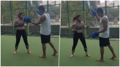 (Amir Khan Daughter Ira Khan hugs Boyfriend Nupur Shikhare while boxing session)