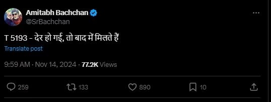 ऐश्वर्या – अभिषेक यांच्या घटस्फोटाच्या चर्चा सुरु असताना महानायक अमिताभ बच्चन यांनी सोशल मीडियावर क्रिप्टिक पोस्ट केली आहे. ‘फार उशीर झाला आहे, त्यामुळे नंतर भेटू…’ अशी पोस्ट बिग बी यांनी केली आहे. बिग बी यांची पोस्ट ऐश्वर्या – अभिषेक याच्याशी निगडीत असल्याचा अंदाज अनेक नेटकऱ्यांनी व्यक्त केला आहे.