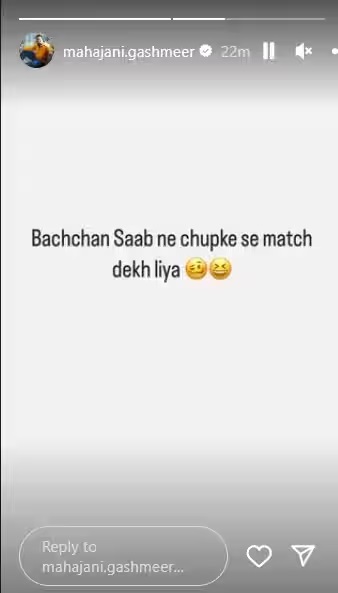 इन्स्टाग्राम स्टोरीवर अभिनेता म्हणाला, ‘बच्चन साहेबांनी लपून मॅच पाहिली’ गश्मीर महाजनी याची पोस्ट देखील सोशल मीडियावर तुफान व्हायरल होत आहे. सध्या सर्वत्र फक्त आणि फक्त वर्ल्ड कप 2023 फायनलची चर्चा रंगत आहे. सोशल मीडियावर वर्ल्ड कप 2023 चे अनेक फोटो आणि व्हिडीओ व्हायरल होत आहे.