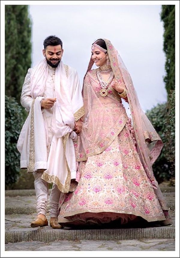 या लग्नातील अनुष्काच्या लेहंग्याची खूप चर्चा झाली. लाल रंगाऐवजी पेस्टल कलरचा लेहंगा परिधान करून अनुष्काने एक नवा ट्रेंड आणला. 32दिवसांत 67 कारागिरांनी तयार केलेल्या या लेहेंग्याची किंमत होती 32 लाख रुपये. त्यानंतर भारतात झालेल्या रिसेप्शनसाठी पंतप्रधान नरेंद्र मोदी, अमिताभ बच्चन, रणबीर कपूर, सचिन तेंडुलकर, अंबानी कुटुंब एम.एस. धोनी अशा अनेक VIP ना निमंत्रण देण्यात आलं होतं.