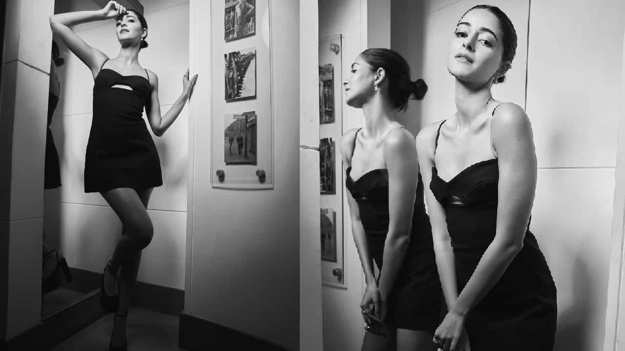 या लेटेस्ट ब्लॅक अँड व्हाइट फोटोंमध्ये अनन्या पांडे ब्लॅक कलरच्या शॉर्ट डीप नेक ड्रेसमध्ये सुंदर दिसत आहे.