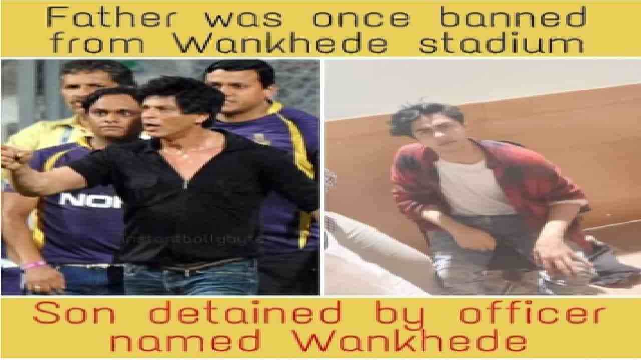 सोशल मीडियावर सध्या शाहरुख आणि वानखेडे या दोन नावांना घेऊन वेगवेगळी चर्चा होत आहे. नेटकरी जिथे वानखेडे तिथे शाहरुख अडचणीत असे म्हणत आहेत. तसे काही मीम्स आणि फोटोदेखील व्हायरल होत आहेत. वानखेडे नावाच्या अधिकाऱ्यामुळेच शाहरुख सध्या अडचणीत आलाय. तर 2012 साली आयपीएल सामन्यांच्या दरम्यान मुंबई येथील वानखेडे स्टेडियमवरच शाहरुख खानने एका सुरक्षा रक्षकाशी वाद घातला होता. या दोन्ही ठिकाणी शाहरुखसोबत वानखेडे हे नाव आलेले आहे. कदाचित याच कारणामुळे जिथे वानखेडे तिथे शाहरुखच्या अडचणी वाढल्या असे नेटकरी म्हणत आहेत. शाहरुखच्या मानगुटीवर वानखेडे हे नाव असल्याची चर्चा सोशल मीडियावर रंगलीय.