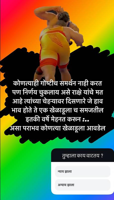 धनंजय पोवार उर्फ डीपीने स्टोरी शेअर करत काही ओळी लिहील्या आहेत – ” कोणत्याही गोष्टीच समर्थन नाही करत. पण निर्णय चुकला आहे असे राक्षे यांचे मत आहे. त्यांच्या चेहऱ्यावर दिसणारे जे हावभाव होते, ते एक खेळाडूलाच समजतील.” “इतकी वर्षे मेहनत करुन असा पराभव कोणत्या खेळाडूला आवडेल?” असा सवाल त्यांनी उपस्थित केला आहे. तसेच न्याय झाला की अन्याय ? असा सवालही त्यांनी पोस्टच्या खाली चाहत्यांना विचारला आहे. त्याच्या या पोस्टची बरीच चर्चा सुरू आहे.
