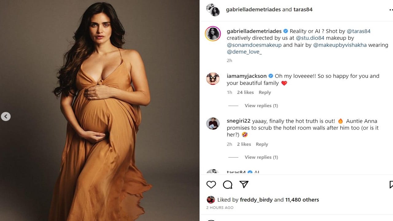 गॅब्रिएलाने काही फोटो सोशल मीडियावर पोस्ट केले आहेत, ज्याद्वारे तिने तिच्या दुसऱ्या गरोदरपणाची गोड बातमी चाहते आणि सेलिब्रिटींसोबत शेअर केली आहे. इंस्टाग्राम हँडलवर फोटो शेअर करत तिने कॅप्शनमध्ये ‘वास्तविकता की कृत्रिम बुद्धिमत्ता?’ असं लिहिलं आहे. प्रग्नेंसी दरम्यानचे फोटो पोस्ट केल्यामुळे गॅब्रिएला तुफान चर्चेत आहे. फोटो व्हायरल होताच अनेकांनी शुभेच्छांचा वर्षाव केला आहे.