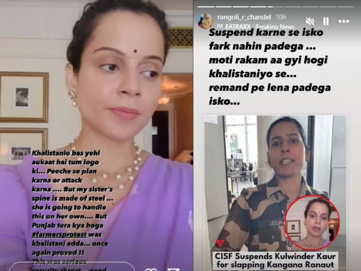 रंगोली हिने म्हटले की, खलिस्तानी, तुमचा हा एकच दर्जा आहे. मागून कट आणि हल्ला. माझ्या बहिणीचा पाठीचा कणा खूप मजबूत आहे. स्टीलने बनलेला आहे. ते तुम्ही तोडू शकत नाहीत. ही परिस्थिती ती स्वतः हाताळेल. परंतू, आता तुमचे पंजाबचे काय होणार? शेतकरी आंदोलन हे खलिस्तानींचे अड्डे होते. आणखी एक गोष्ट म्हणजे ही सुरक्षेत अत्यंत मोठी चूक आहे आणि हे सिद्ध झाले.