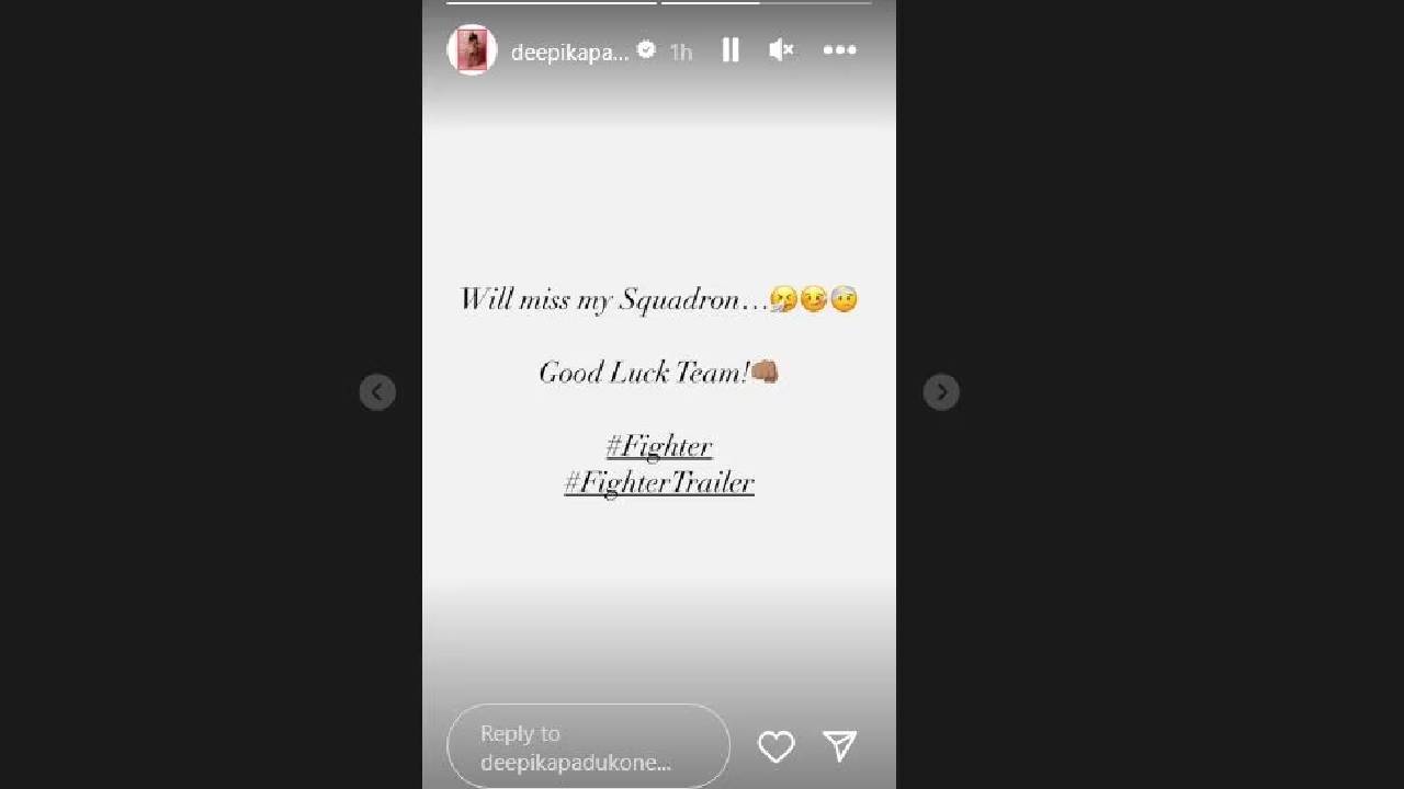 आता दीपिका पादुकोण हिची पोस्ट चर्चेत आलीये. दीपिका पादुकोण हिने सोशल मीडियावर पोस्ट शेअर करत फायटर चित्रपटाच्या टिमला शुभेच्छा देताना लिहिले की, स्क्वाड्रनला मिस करतंय..टीमला शुभेच्छा! सोबत एक पंच इमोजी ही तिने शेअर केलाय. दीपिकाने पोस्टमध्ये काही इमोजी शेअर केले आहेत, ज्यामध्ये तिने आजारी पडल्याचे सांगितले आहे.