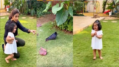 शिल्पा शेट्टीने आपल्या इन्साग्रामवर एक व्हीडिओ शेअर केला आहे. ज्यात ती आपली मुलगी समिशाला प्राण्यावर प्रेम करायला शिकवताना दिसतेय. त्याच झालं असं की शिल्पाच्या घराजवळ एक कावळा जखमी अवस्थेत आढळून आला. यावेळी ती आपली मुलगी समिशाला जखमी कावळ्यासाठी प्रार्थना करायला सांगताना दिसून आली. यावेळी तिने समिशाला हा जखमी कावळा लवकरात लवकर बरा व्हावा, यासाठी ‘ओम साई राम’ म्हणायला सांगितलं. तसंच ती ‘गेट वेल सून बर्डी’, असं म्हणायला सांगताना दिसतेय. या व्हीडिओत समिशानेही हात जोडलेले दिसून येत आहेत.
