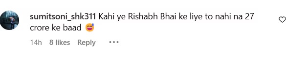 अनेकांनी अभिनेत्रीच्या पोस्टला ऋषभ पंत याच्यासोबत जोडलं आहे. एका नेटकरी अभिनेत्रीच्या पोस्टवर कमेंट करत म्हणाला, ’27 कोटी मिळाल्यानंतर पोस्ट ऋषभ पंत साठी तर नाही ना?’, दुसरा नेटकरी म्हणाला, ‘ऋषभ पंत 27 कोटी…’, सध्या सर्वत्र उर्वशीच्या पोस्टची चर्चा रंगली आहे.