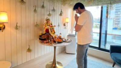 कार्तिक आर्यन आणि कियारा अडवाणीचा सत्यप्रेम की कथा या चित्रपटातील दोघांचा फर्स्ट लूक समोर आलायं. दरम्यान, कार्तिक आर्यनने त्याच्या घरातील गणपती बाप्पांचे फोटो चाहत्यांसोबत शेअर केले आहेत. नुकतेच कार्तिक आर्यनने नवीन खरेदी केलेल्या घराचा फोटो शेअर केला आहे. इंस्टाग्रामवर कार्तिकने हा फोटो शेअर केलायं. कार्तिकने पांढऱ्या रंगाचा टी-शर्ट आणि निळी जीन्स घातल्याचे फोटोमध्ये दिसतंय. कार्तिक घरातील गणपती बाप्पासमोर उभा राहून प्रार्थना करतांना या फोटोमध्ये दिसतोयं.