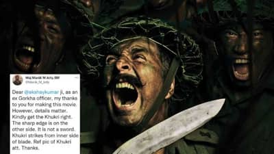 मेजर माणिक एम जोली म्हणालेत, “प्रिय अक्षय कुमार, मी एक माजी गोरखा अधिकारी आहे. त्यामुळे तुम्ही या चित्रपटाची निर्मिती केल्याबद्दल मी सर्वप्रथम तुमचे आभार मानतो. पण तुम्हाला एक महत्त्वाची माहिती द्यायची आहे. या चित्रपटाच्या पोस्टरमधील खुकरी ही व्यवस्थित दाखवावी. खुकरी हे एक धारदार शस्त्र असून त्याची धार ही आतील बाजूला असते. ही तलवार नाही तर खुकरी आहे, जिचा वार आतील बाजूने होतो. यासाठी मी तुम्हाला खुकरीचा एक फोटोही पाठवत आहे. धन्यवाद,” असं ट्वीट त्यांनी केलं आहे.
