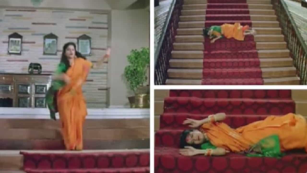 गाण्यानंतर घरातील फोनची बेल वाजते. बाळाला सांभाळण्यासाठी निशाच्या हातात देऊन पूजा खोलीबाहेर जाते. फोन खालच्या मजल्यावर असतो. काहीशी धावत-पळतच पूजा जिन्यावरुन उतरायला जाते. इतक्यात मागून कसलातरी आवाज आल्याने ती वळते, आणि तिचा पाय घसरतो. ती किंचाळते. उंच जिन्यावरुन पूजा गडगडत थेट खाली पडते. ती खालच्या मजल्यावर पोहोचते, तेव्हा तिचे कपाळ रक्तबंबाळ झालेले असते. आवाज ऐकून प्रेम आणि निशा तिथे पोहोचतात आणि तिला हॉस्पिटलमध्ये नेतात. पुढचा क्रम बहुतेकांना माहित असेल, किंवा तो चित्रपटात पाहणंच रंजक आहे. त्यामुळे हा सीन कसा शूट झाला, याकडे आधी वळूया.