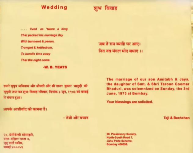 अमिताभ अन् जया बच्चन यांची लग्नपत्रिका व्हायरल, पत्रिकेतील त्या चार ओळींवर होऊ लागली चर्चा, कारण…