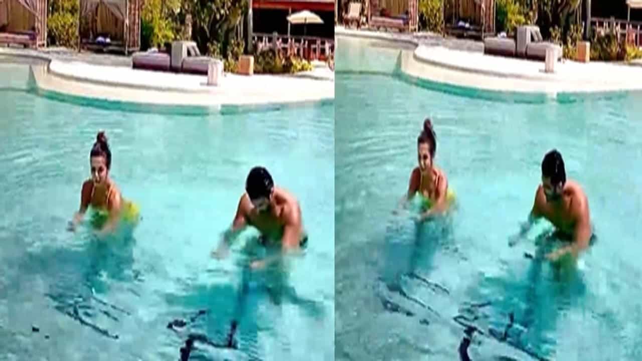 या व्हिडीओमध्ये मलायका अरोरा आणि अर्जुन कपूर पूलमध्ये सायकल चालवताना दिसत आहेत. ही सायकल व्यायामाची सायकल आहे, जी जिममध्ये व्यायामासाठी वापरली जाते. एकाच सायकलवर स्वार होऊन हे दोन कलाकार वेगवेगळे व्यायाम करत आहेत आणि ते एकत्र खूप आनंदी दिसत आहेत.