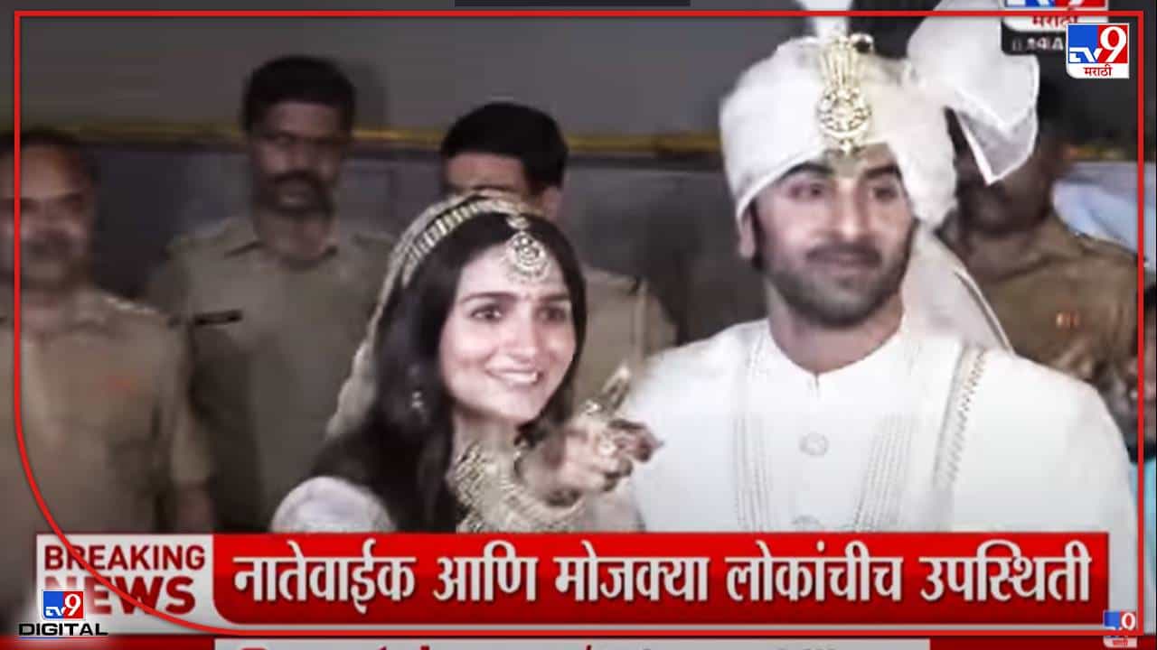 मुंबई : अभिनेता रणबीर-आलिया (Ranbir Alia wedding) मुंबईत विवाहबंधनात अडकले. नातेवाईक आणि मित्रमंडळींच्या उपस्थितीत हा लग्नसोहळा पार पडला. या लग्नसोहळ्याची (Celebrity Wedding) अनेकांना उत्सुकता होती. अखेर लग्न लागल्यानंतरची पहिली दृश्य समोर आली आहे. लग्नानंतर रणबीर आणि आलिया यांना शुभेच्छा देण्यासाठी चाहत्यांनी मुंबईतीतल बंगल्याबाहेर गर्दी केली होती. माध्यमांचे कॅमेरेही हा क्षण टिपण्यासाठी एकवटले होते. अखेर मोठ्या उत्साहात आणि थाटामाटत हा लग्नसोहळा संपन्न झाल्यानंतर रणबीर आणि आलियाच्या चेहऱ्यावर संपूर्ण सोहळ्याचा आनंद झळकत होता. मुंबईतील रणबीरच्या ‘वास्तू’ या (Vastu Residence, Mumbai) निवासस्थानी हा लग्नसोहळा पार पडला. यावेळी मोजकेच पाहुणे या लग्नसोहळ्यासाठी उपस्थित होते. कपूर आणि भट्ट कुटुंबीयांसोबत बॉलिवूडमधील निवडक लोकांना या लग्नसोहळ्यानं निमंत्रण देण्यात आलं होतं.