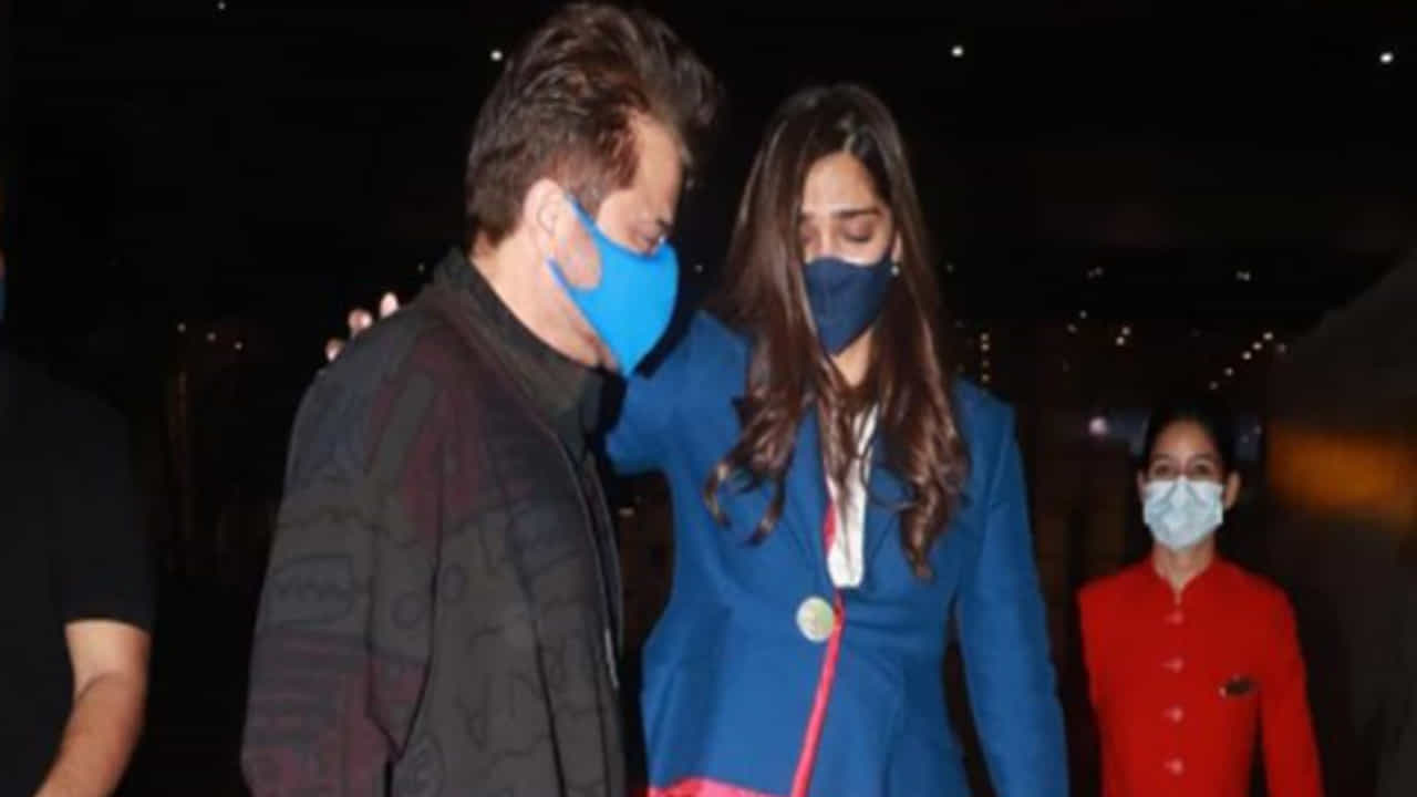 या चर्चित फोटो आणि व्हिडीओंमध्ये अनिल कपूर आणि सोनम दोघेही नेहमीप्रमाणे स्टायलिश अवतारात दिसत आहेत. सोनमने राखाडी आणि निळा प्रिंटेड ड्रेस परिधान केला होता. यासह त्याने निळ्या-लाल रंगाचे जॅकेट आणि मास्क देखील परिधान केला होता.