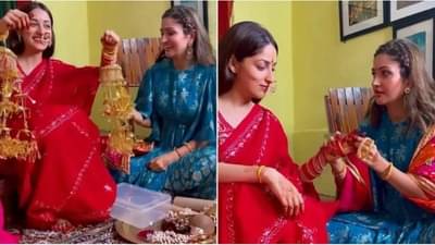 या व्हिडीओमध्ये यामीनं लाल रंगाची साडी परिधान केली आहे. तिची बहीण तिला बांगड्या परिधान करतेय. या फोटोंमध्ये ती कमालीची सुंदर दिसतेय.