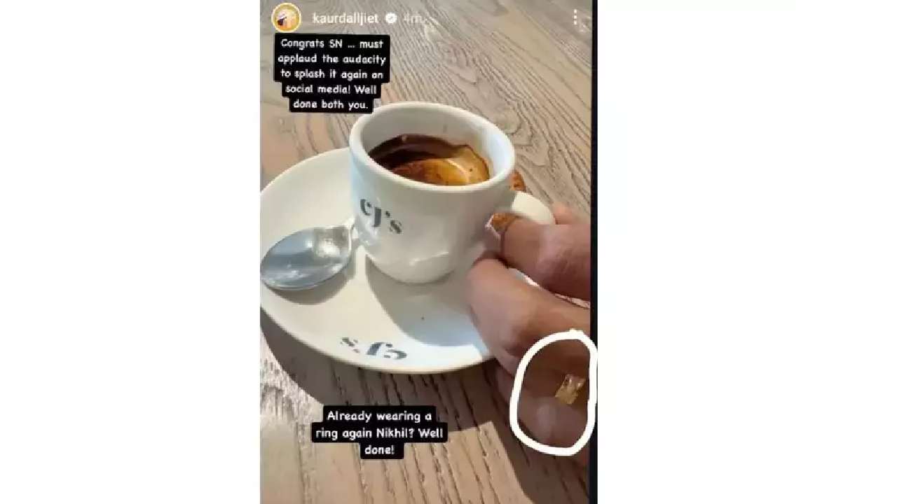 प्रसिद्ध टीव्ही अभिनेत्री दलजीत कौरला तिच्या खासगी आयुष्यात अनेक संकटांचा सामना करावा लागत आहे. पहिलं लग्न अयशस्वी ठरल्यानंतर दलजीतने गेल्या वर्षी केन्यातील बिझनेसमन निखिल पटेलशी दुसरं लग्न केलं. लग्नानंतर ती पती आणि मुलासह केन्याला राहायला गेली होती. मात्र वर्षभराच्या आतच ती मुलाला घेऊन भारतात परतली. दलजीतने निखिलवर विवाहबाह्य संबंधाचे आरोप केले होते. तर निखिलने दलजीतसोबतचं लग्नच मानण्यास नकार दिला. या सर्व नाट्यानंतर आता निखिलने तिसऱ्यांदा साखरपुडा केल्याचं कळतंय. दलजीतने तिच्या इन्स्टाग्राम स्टोरीमध्ये निखिलच्या स्टोरीच्या स्क्रीनशॉट शेअर केला आहे. या फोटोमध्ये कॉफीचा कप पहायला मिळत असून निखिलच्या हातात सोन्याची अंगठीही दिसत आहे.