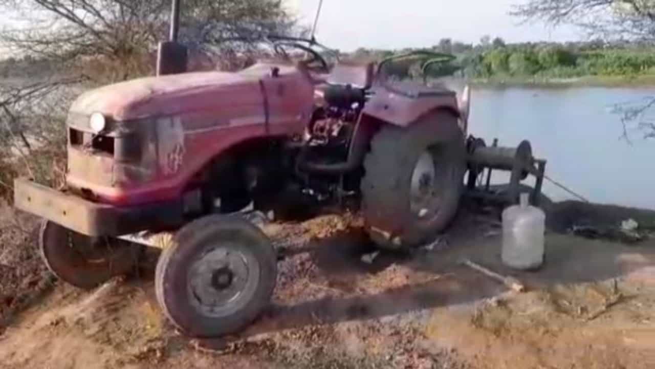 उपसा करण्यासाठी देसी जुगाड करण्यात आला आहे. जेसीबीला फावडा लावून देसी जुगाड, गोदावरी नदीपात्रात रोप वे टाकून हा वाळू उपसा केला जातोय. (Desi Jugad with shovel to JCB, plant way in Godavari river basin and sand extraction)