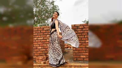 सपना टायगर प्रिंट साडी परिधान करुन दिसत आहे. सपनाच्या हातात ब्रेसलेट आहे आणि तिच्या डोक्यावर पदर आहे ज्यामुळे तिला एक वेगळा लूक मिळतोय. सपनाची ही देसी स्टाईल चाहत्यांना खूप आवडली आहे.