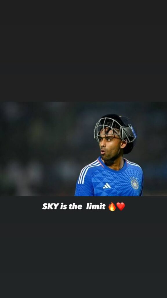 12th Fail मुळे चर्चेत आलेला नामवंत अभिनेता विक्रांत मेस्सीनेही दोन फोटो शेअर केले आहेत. पहिल्या फोटोत त्याने सूर्य कुमार यादव दिसतोय आणि “स्काय इज द लिमिट.” असं लिहीलं आहे. तर दुसरा फोटो रोहित शर्माचा असून त्यावर “बॉस” असं लिहीण्यात आलं आहे.